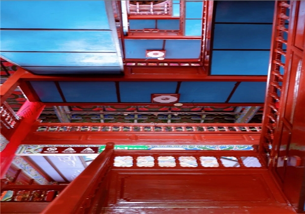 踏入萬古樓內(nèi),經(jīng)不住會感慨它的風采,朱紅色的木質(zhì)樓梯、顏色紛繁的彩畫、點著光亮的燈籠……仿佛一下穿越到古代。