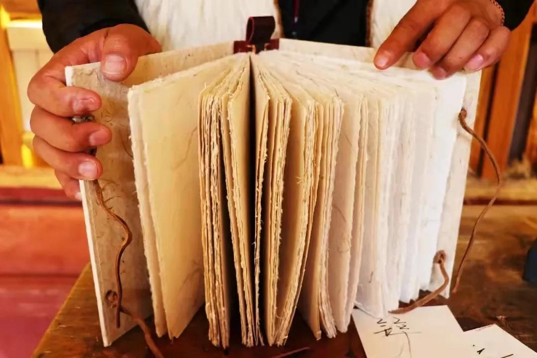 當(dāng)你觸摸它時(shí),略顯粗糙厚重的質(zhì)感中帶著一股神圣靜謐的歷史感,讓人忍不住心生敬畏。現(xiàn)在,一張張質(zhì)樸的東巴紙被制作成了現(xiàn)代人實(shí)用的筆記本、書簽、燈罩等,歷史與現(xiàn)代的交織,讓東巴紙煥發(fā)出新生的魅力。