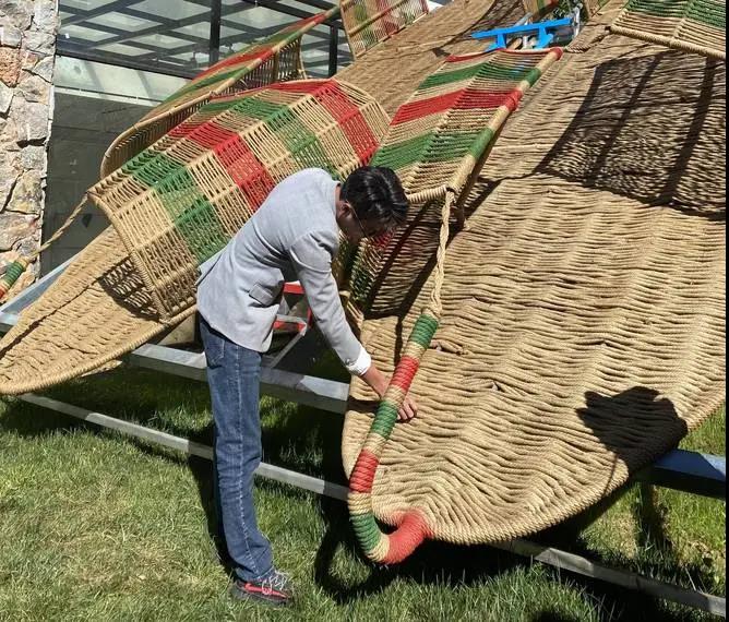 楊紹君說:“現在手工做草鞋的人已經越來越少了,當這個文化失傳了以后,那我們就只能看到‘草鞋’這兩個字,并不知道這個實實在在的東西,它是長什么樣子的,我希望用這樣一個很有視覺沖擊力的表現形式,讓更多的人去知道和認識草鞋編織文化。”
