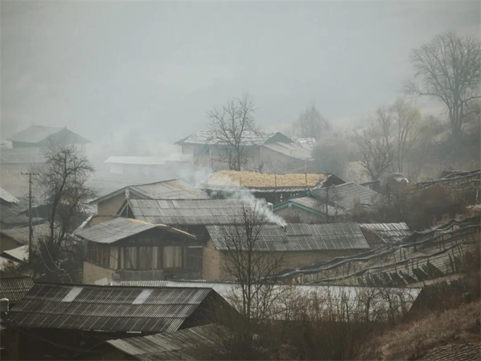 尾隨冬天的腳步,每年的殺豬季如約而至。天蒙蒙亮,整個(gè)村子還沉浸在睡夢(mèng)中,周?chē)磺须鼥V而幽靜。隨著燒殺豬水的男人的劈柴聲、咳嗽聲,偶爾的狗叫聲,伴著那熊熊燃燒的火卷過(guò)干柴發(fā)出的噼啪聲,美麗的麗江壩子慢慢的從沉睡中悄悄地醒來(lái)。晨曦中,裊裊炊煙升起來(lái)了。家家戶戶屋頂?shù)拇稛熢诖遄永飶浡_(kāi)來(lái),形成了一層青色的薄霧,籠罩著村子,清秀的山村因此而增加了一種朦朧之美。