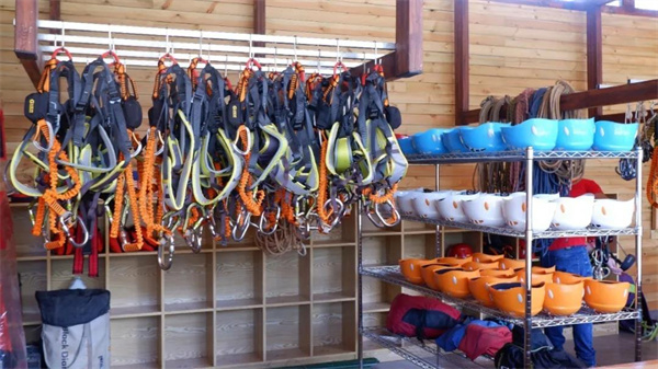 換裝備 → 步行熱身 → 教練教授攀巖技巧和安全知識 → 攀巖(鋼絲橋、云梯、高空吊橋、溜索)→ 卸裝備 → 攀巖結(jié)束到達(dá)東巴探險(xiǎn)中心,根據(jù)教練指導(dǎo),換上攀巖裝備。在教練的指引下,沿著小路走到攀巖起點(diǎn),走路的過程也是基礎(chǔ)熱身的過程。到達(dá)起步地點(diǎn)之后,教練會(huì)對攀巖者進(jìn)行基礎(chǔ)操作的講解和示范,大概5分鐘。