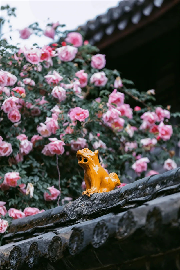 人家的窗欞。那些柔韌的藤蔓,像極了繡娘手中的絲線,將八百年的古城細細縫制成一件粉色的霓裳。曾有位英國園藝